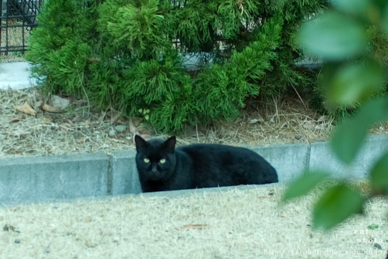 こちらと同じときに撮影しました。外ではじめて猫さんに遭遇したのに、単焦点しか持ってなくてこんな小さくしか撮れませんでした…トリミングすると下のようになります。鳥も撮りたいし、もう少しアップで撮りたいものも多いし、お散歩には望遠レンズのほうがよいのかな? ちなみに「猫を探せ(1)」はこちらです。