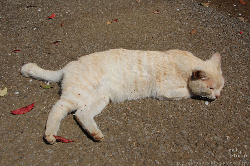 陽だまりの中、気持ちよさそうに寝入る猫さん。